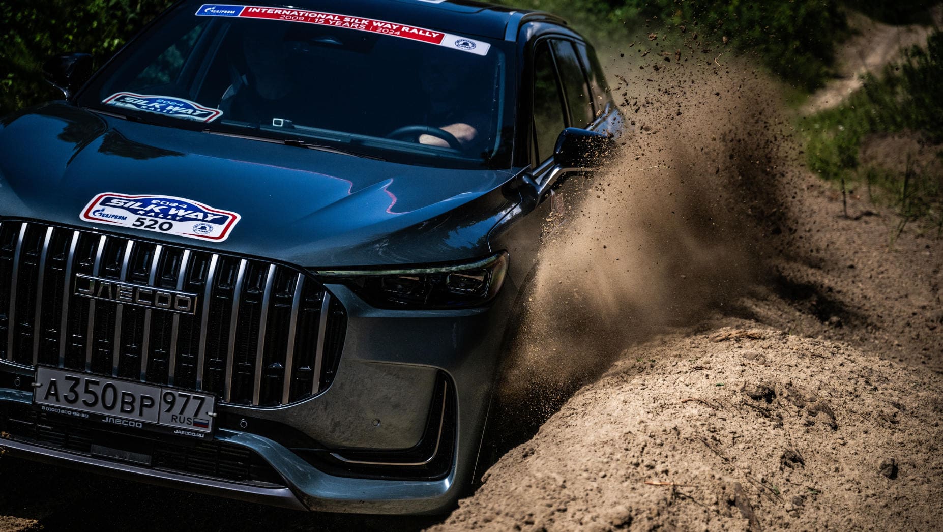 Спецучасток первого дня участники «Шелкового пути» оценивают как один из самых сложных за всю историю соревнований. Но наш флагманский кроссовер JAECOO J8 настоящий боец и держится наравне с другими участниками.